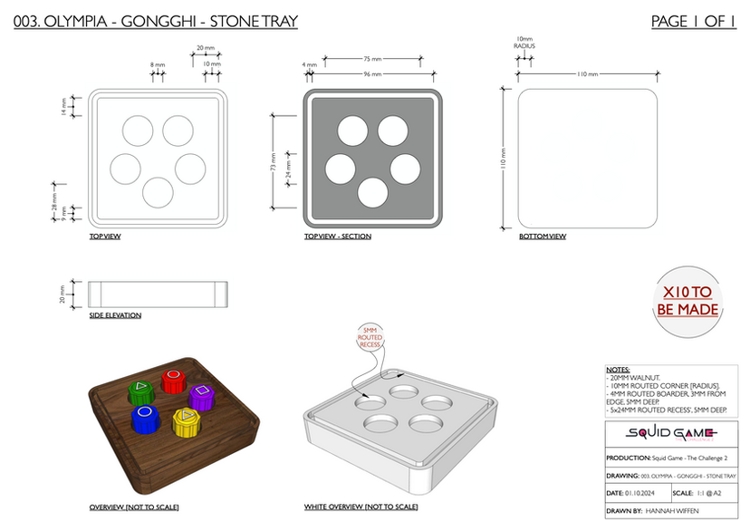 The main task for me on this set was the numbers on the board. These had to be big enough to fit with the scale of the game, but small enough to be able to go through our vinyl cutter. Because of this, I had to do each digit in two pieces to make it easier to cut. But we also double layered these, black first, then white to give the numbers a bit of definition and clarity. Before embarking onto the board to start this task, I made a spreadsheet in excel with all the measurements in order for us to get the numbers in the centre of each individual board.